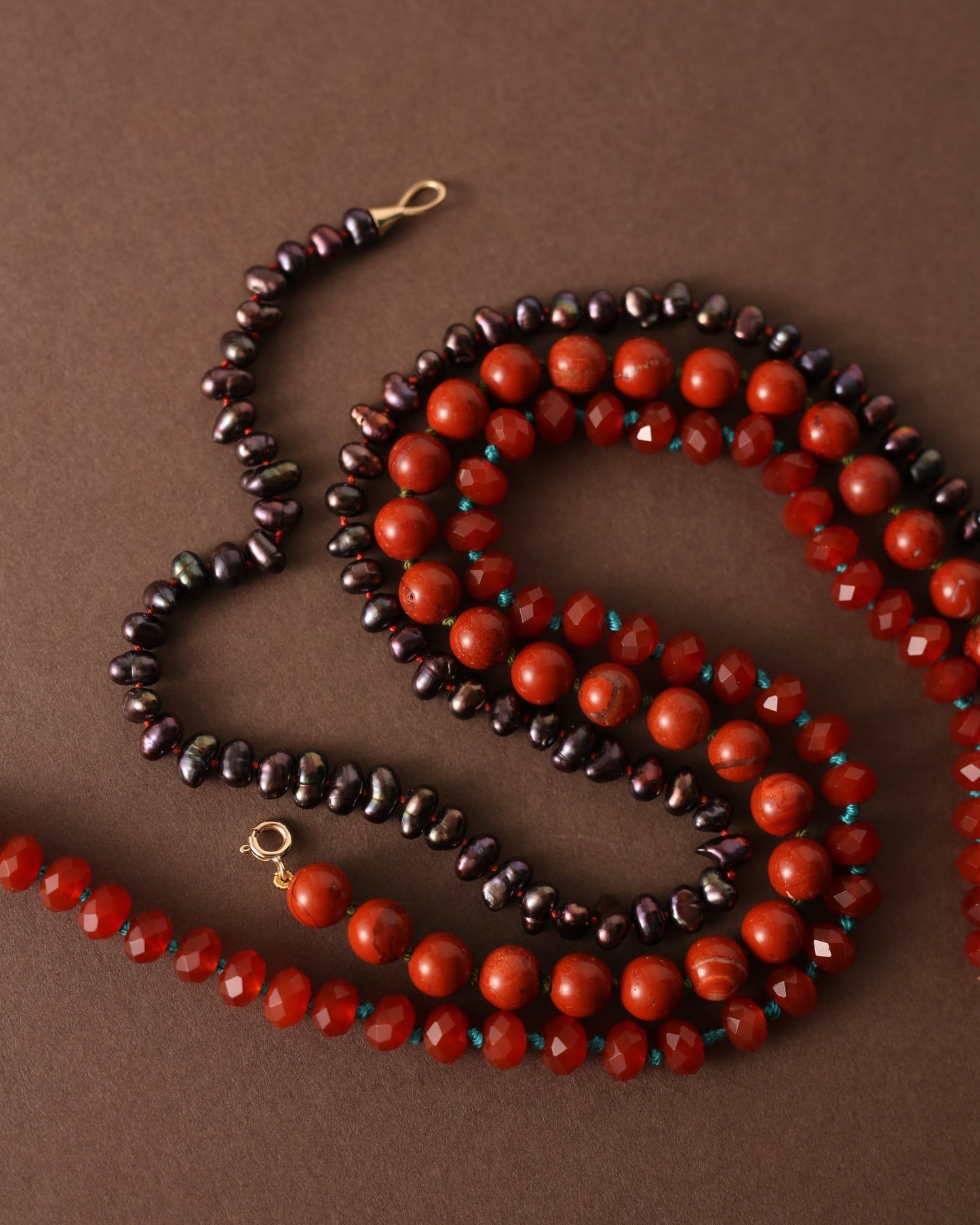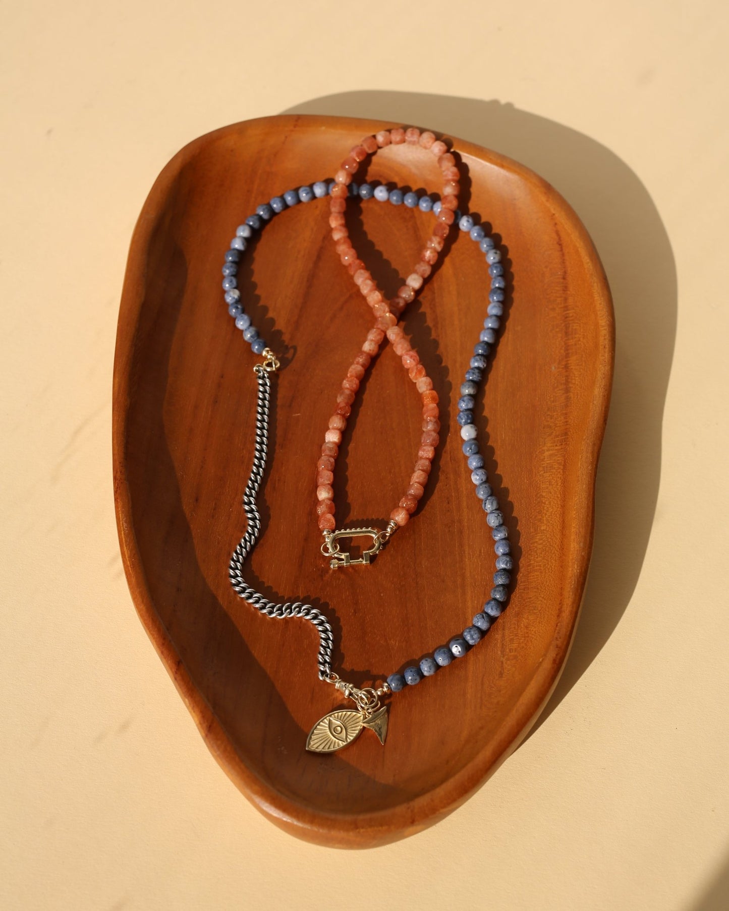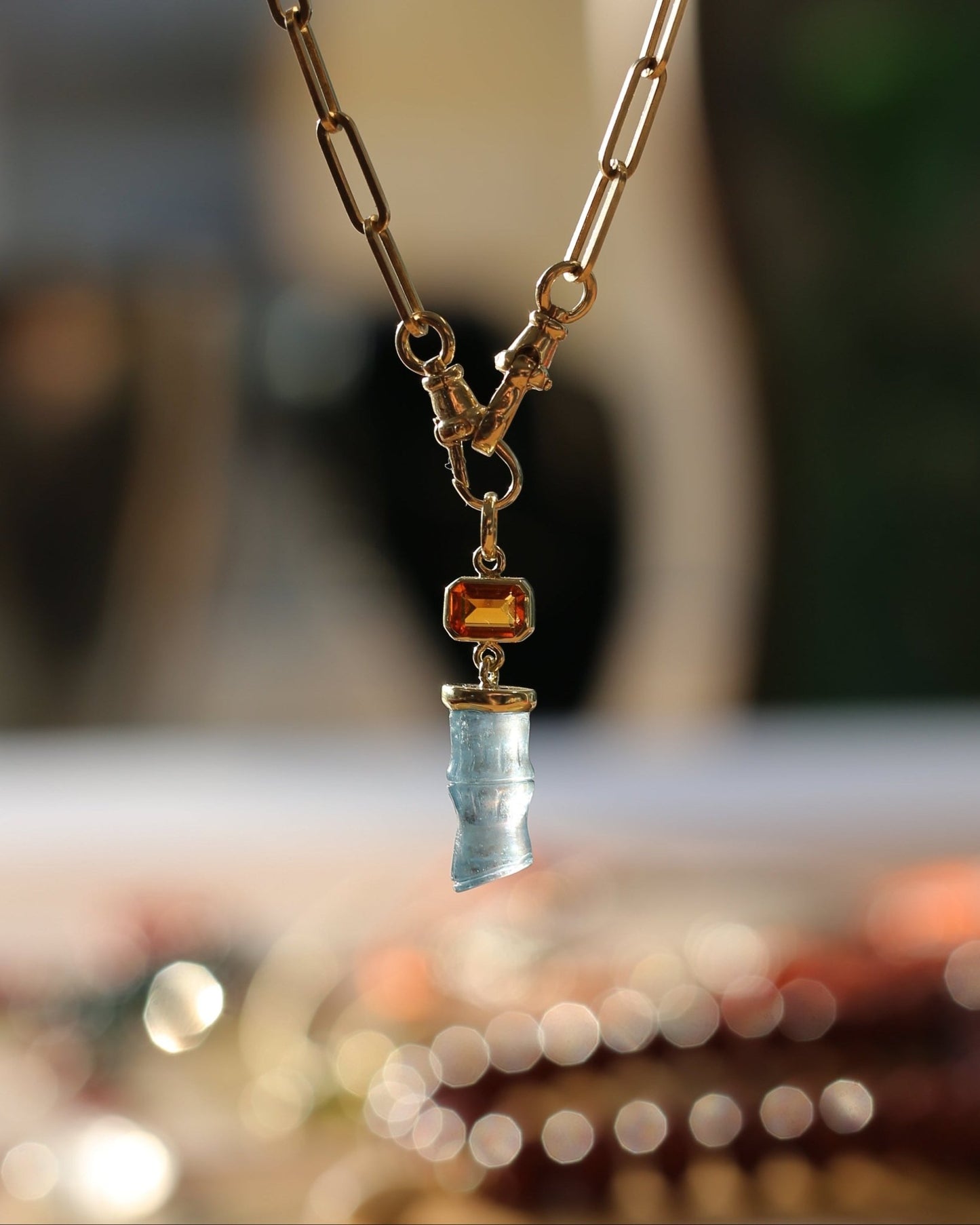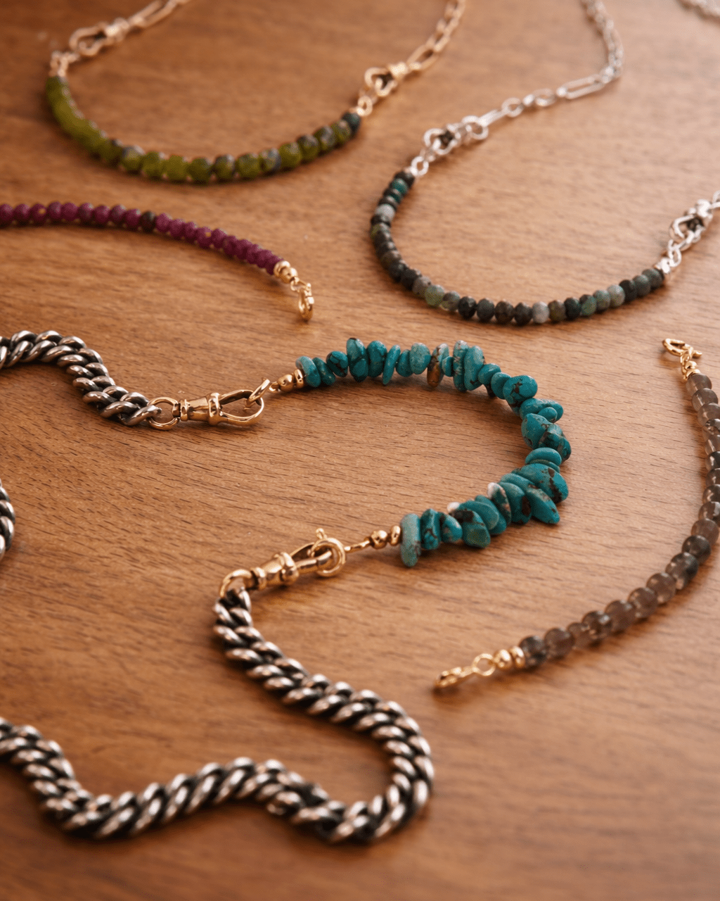 Slide a gem necklace onto your connector. Each stone is chosen for its colour, cut and character. Mix warm and cool tones or keep it tonal.