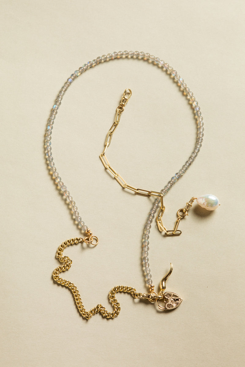 This is a bracelet and necklace extension in one. The musketon ending also allows you to add a charm. You can choose between 3 sizes of gold and 1 silver curb option.