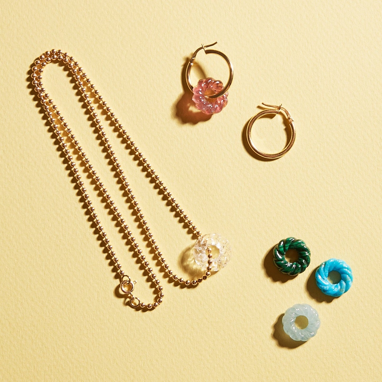 Please take care of your treasures. We use semi precious stones and pearls, which are delicate in nature. Avoid scratching, don't swim or shower with them and keep them away from chemicals, perfume and creams.