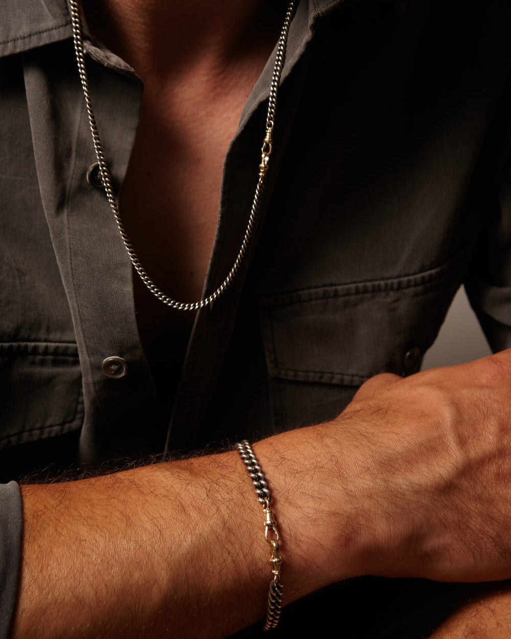 Option 2 Oxidized silver with 9k Gold - Length: 66cm