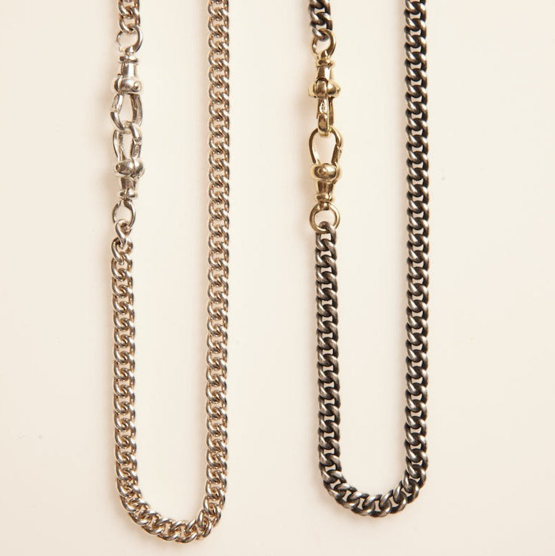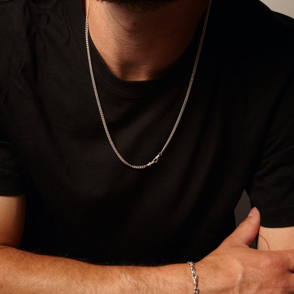 Our men's jewelry is now available! Go bold with this solid curb Necklace with two swivels.