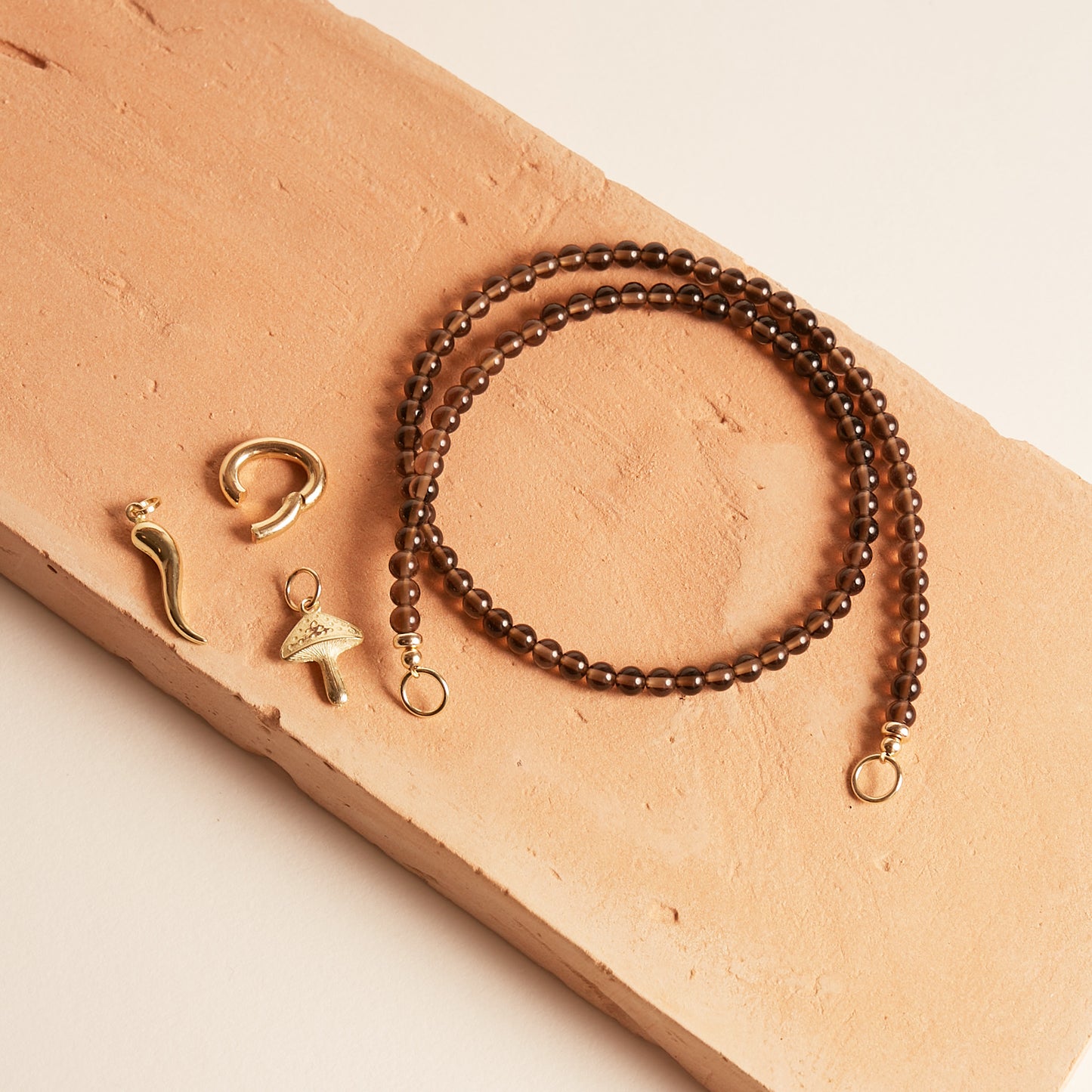 Please take care of your treasures. We use semi precious stones and pearls, which are delicate in nature. Avoid scratching, don't swim or shower with them and keep them away from chemicals, perfume and creams.