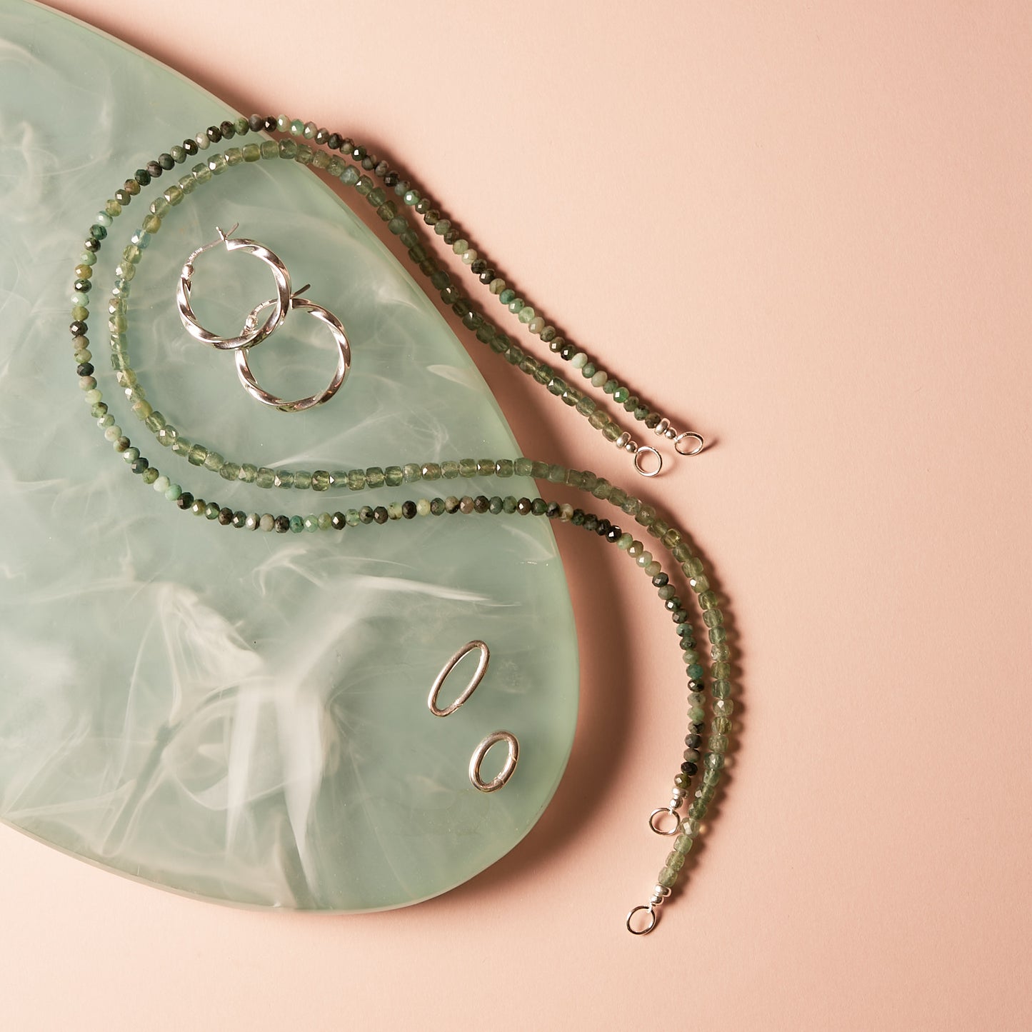 Please take care of your treasures. We use semi precious stones and pearls, which are delicate in nature. Avoid scratching, don't swim or shower with them and keep them away from chemicals, perfume and creams.