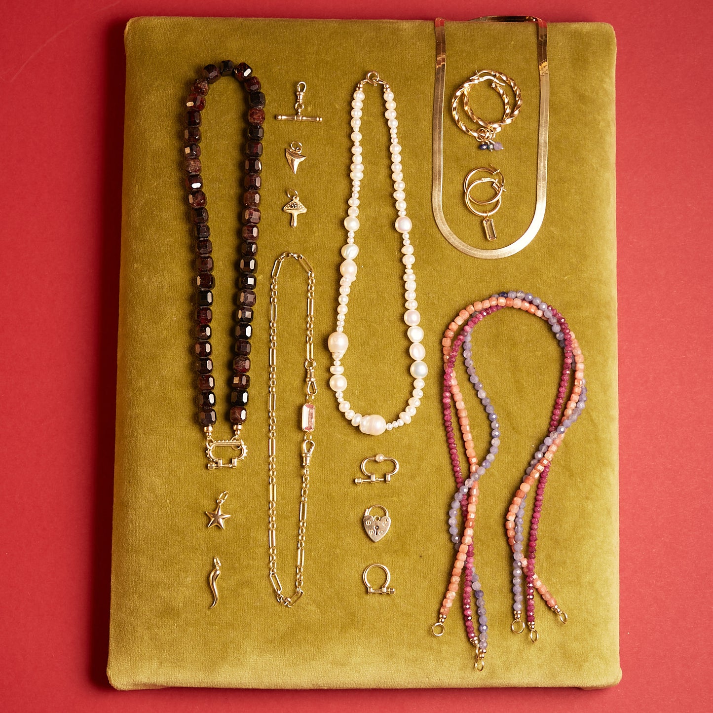 Please take care of your treasures. We use semi precious stones and pearls, which are delicate in nature. Avoid scratching, don't swim or shower with them and keep them away from chemicals, perfume and creams.